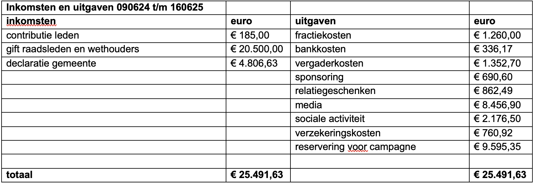 Al onze raadsleden en benoemde wethouders maken maandelijks een gift over van € 125,00 per persoon. Van deze giften reserveren wij ook een gedeelte voor de gemeenteverkiezing(en).